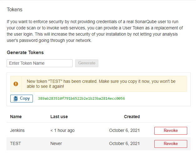 可以點擊 http://localhost:9000/account/security 並在 Generate Tokens 輸入 Token 的名稱並按 Generate,這邊產生的 Token 要先保存起來備用,因為畫面重新整理後就看不到了,忘記的話就得再重新產生一組