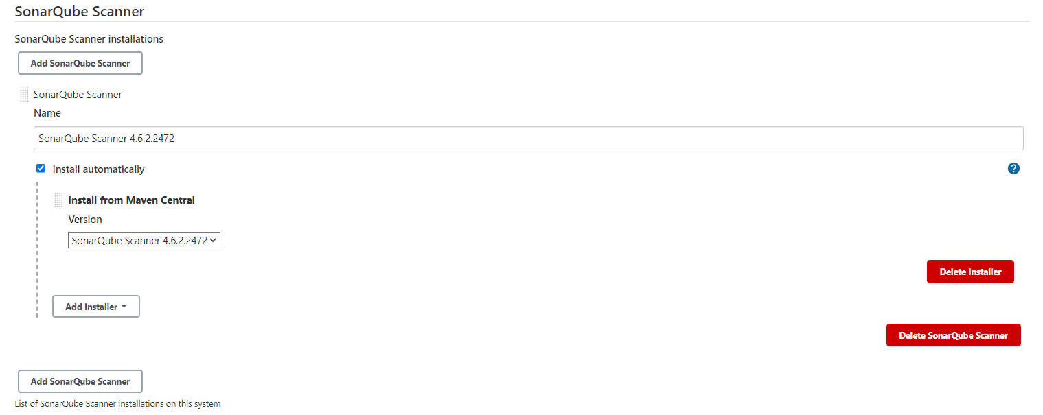 安裝完畢後到 Manage Jenkins -> Global Tool Configuration 設定 SonarQube Scanner 版本