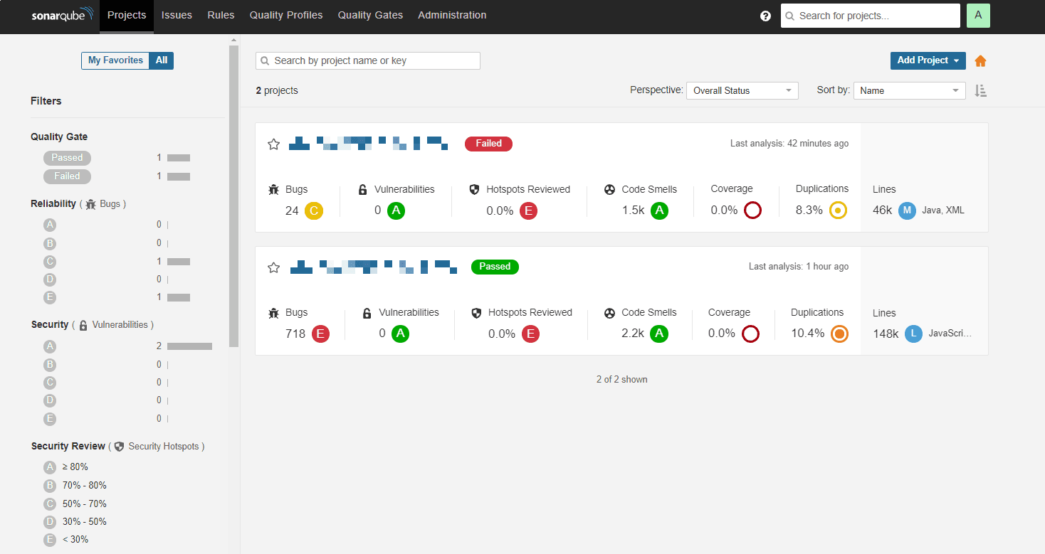 如果上面的步驟都沒有錯誤的話,正常來說在 Jenkins 的構建 Console 中就會看到掃描分析的相關紀錄,此時就可以回到 SonarQube 的頁面應該就會看到分析的結果了,上圖僅供參考....絕不是我的專案 XD